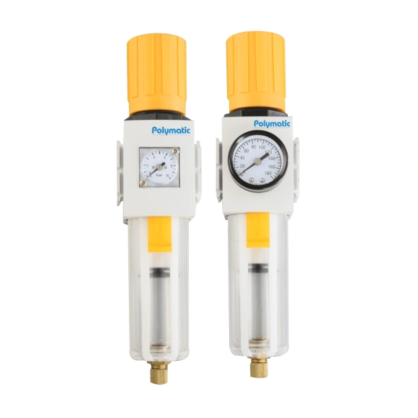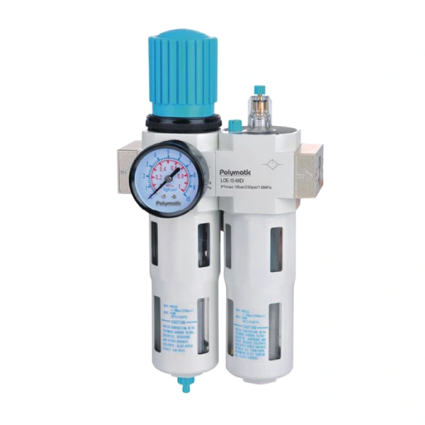 Air Preparation Units (FRLs) Menu Pneumatic Cylinders Solenoid Valves Air Preparation Units (FRLs) Pneumatic Fittings PU Tube & PU Coil Quick Release Couplings (QRCs) Air Guns & Accessories Aeroflex provides FRL units used in: Pneumatic control systems Automation lines Industrial equipment Compressed air networks Units are selected based on: Airflow capacity Pressure regulation range Filtration requirements Lubrication needs Clean and regulated air improves pneumatic system efficiency. MODEL SIZE LF-08 1/4" LF-10 3/8" LF-15 1/2" LF SEIRES FILTER MODEL SIZE LOE-08 1/4" LOE-10 3/8" LOE-15 1/2" LOE SERIES LUBRICATOR MODEL SIZE LR-08 1/4" LR-10 3/8" LR-15 1/2" LR SERIES REGULATOR MODEL SIZE LFC-08 1/4" LFC-10 3/8" LFC-15 1/2" LFC SERIES AIR FILTER REGULATOR + LUBRICATOR MODEL SIZE LFR-08 1/4" LFR-10 3/8" LFR-15 1/2" LFR SERIES AIR FILTER REGULATOR MODEL SIZE TW2000-02 1/4" TW2000-02U 1/4" TW3000-03 3/8" TW4000-04 1/2" TW4000-06 3/4" TW5000-10 1" TW SERIES FILTER REGULATOR MODEL SIZE TC2010-02 1/4" TC2010-02U 1/4" TC3010-03 3/8" TC4010-04 1/2" TC4010-06 3/4" TC5010-10 1" TC SERIES AIR FILTER REGULATOR+LUBRICATOR MODEL SIZE TR2000-02 1/4" TR3000-03 3/8" TR4000-04 1/2" TR4000-06 3/4" TR5000-10 1" TR SERIES AIR REGULATOR Premium Range MODEL SIZE AC2010-02F2 1/4" AC4010-04F2 1/2" AIR FILTER REGULATOR WITH LUBRICATOR MODEL SIZE AW2000-02F2 1/4" AW4000-04F2 1/2" AIR FILTER REGULATOR MODEL SIZE AR2000-02F2 1/4" AR4000-04F2 1/2" AIR REGULATOR